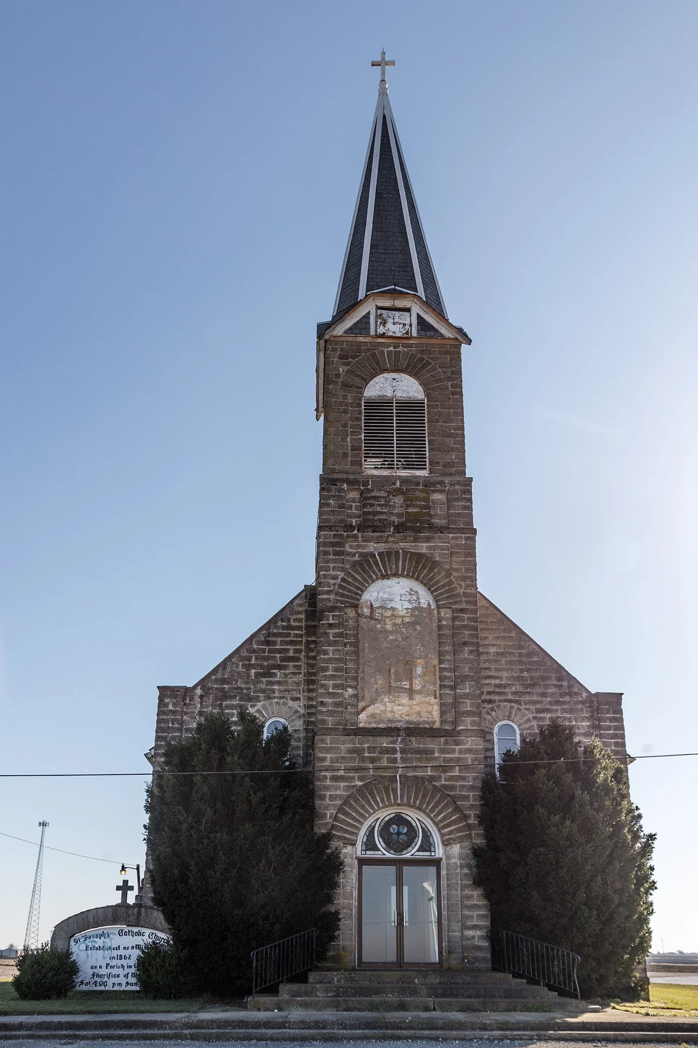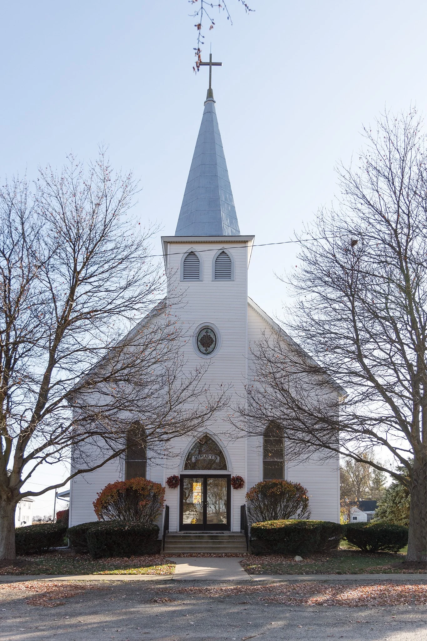 The majestic St. Joseph’s Catholic Church, completed in 1904, sits at the village’s highest point next to the town’s newest structure, the township shed.