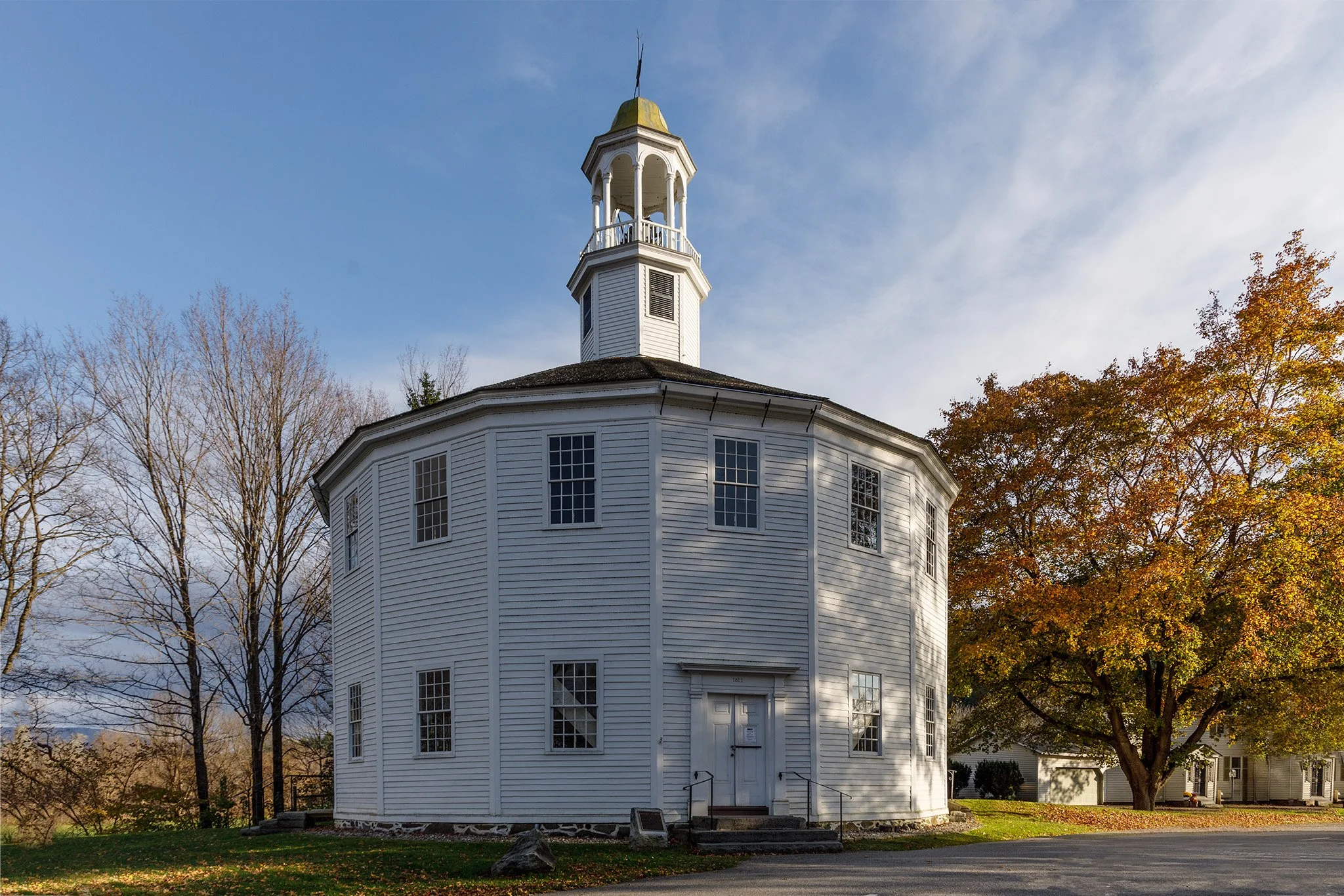 The Round Church, also known as the Old Round Church, is a historic church on Round Church Road in Richmond, Vermont. Built in 1812–1813, it is a rare, well-preserved example of a sixteen-sided meeting house, likely the only remaining example of its kind in North America. — Wikipedia