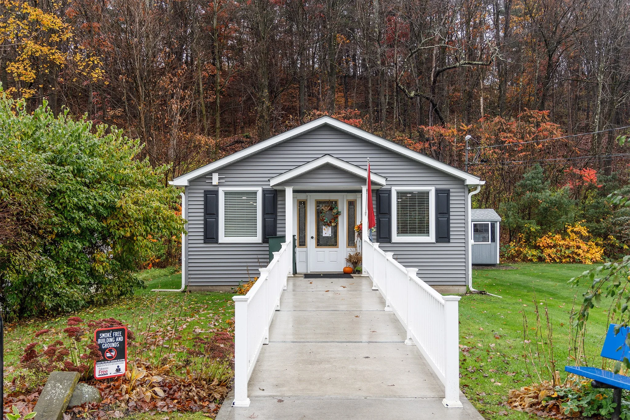 We drove through Lewiston, Maine. Flags were at half mast, and trees had white ribbons tied to them following the mass shooting there ten days ago. President Biden had visited yesterday.