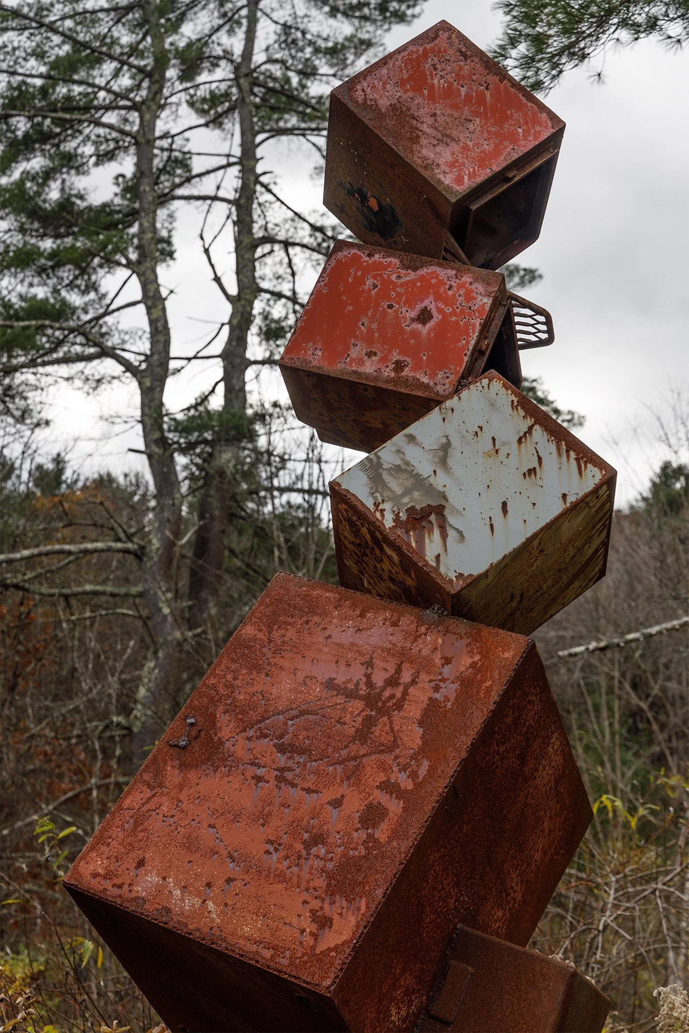 A morning driving around Burlington, Vermont (just about fifty miles south of Canada). First stop was the World’s tallest filing cabinet. A rusty 40-foot-high tower of stacked file cabinets welded together.