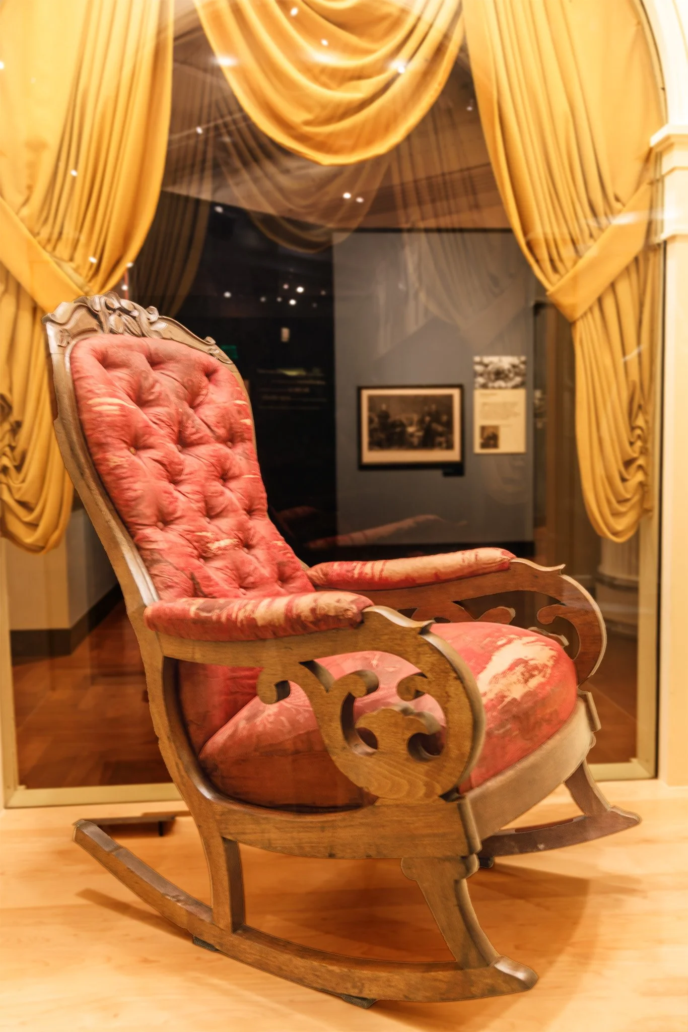 The chair that Abraham Lincoln was sitting in when assassinated at Ford’s Theater in 1865,